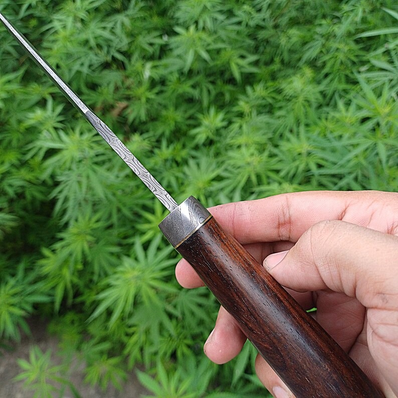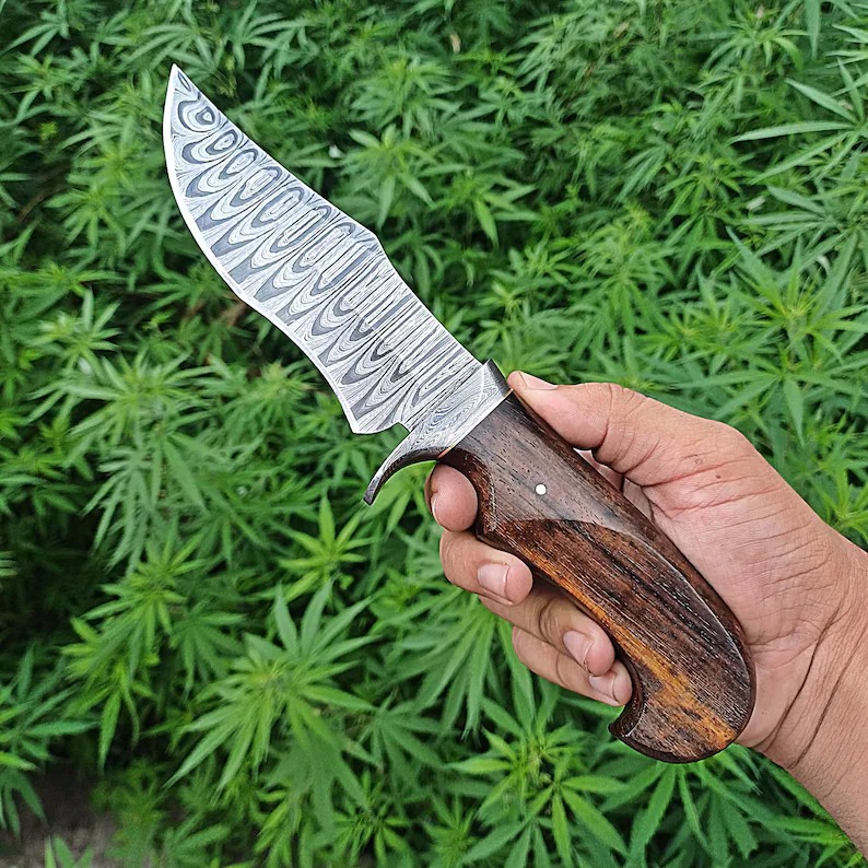 The Handle: Ergonomic Rosewood Design of Damascus Steel Fixed Blade Knife: