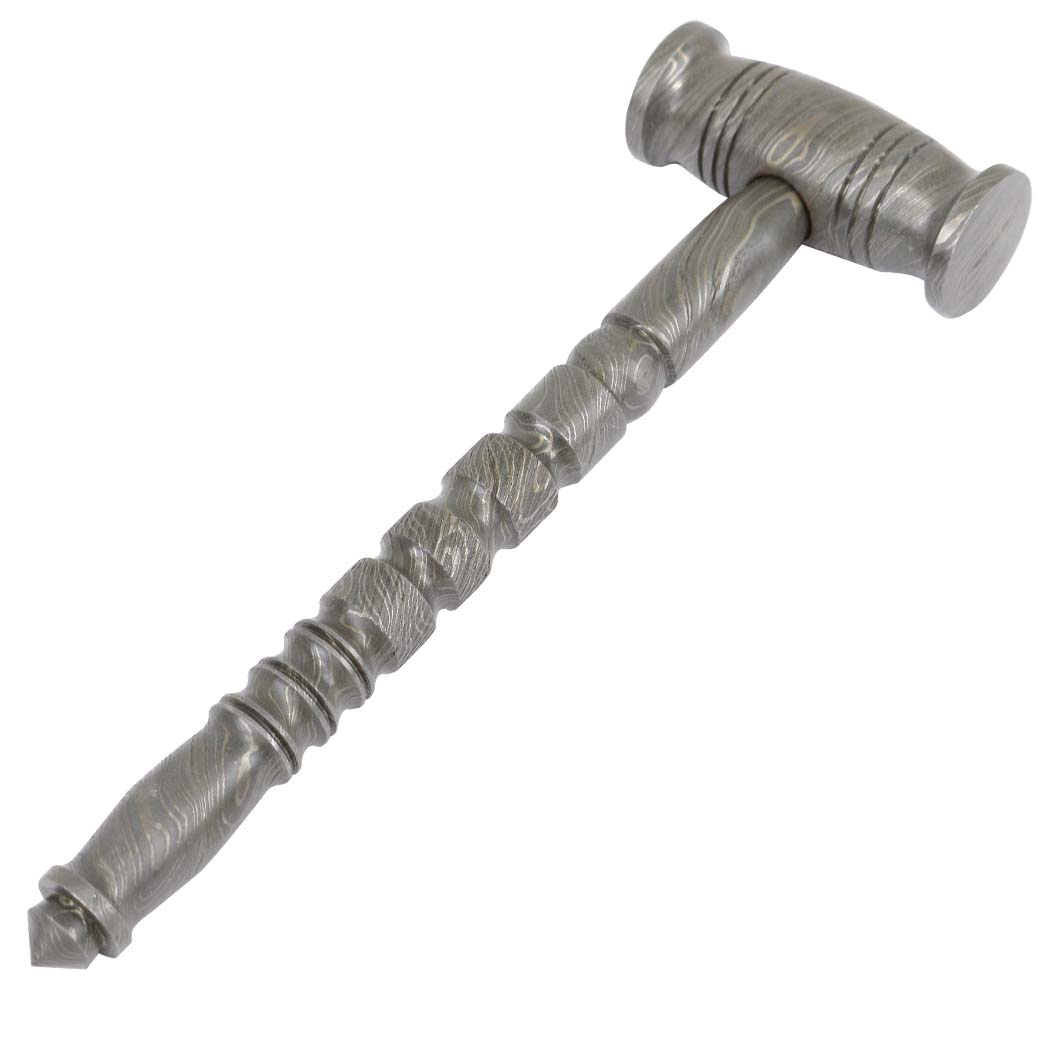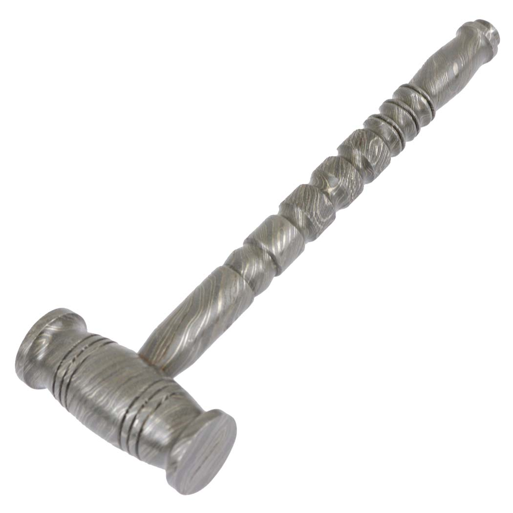 Here we have a custom hand-made Damascus steel hammer with a different kind of shape. The overall length is 14.00 inches, the handle length is 12 inches, and the handle is made of strong rosewood, blade with a twisted pattern.