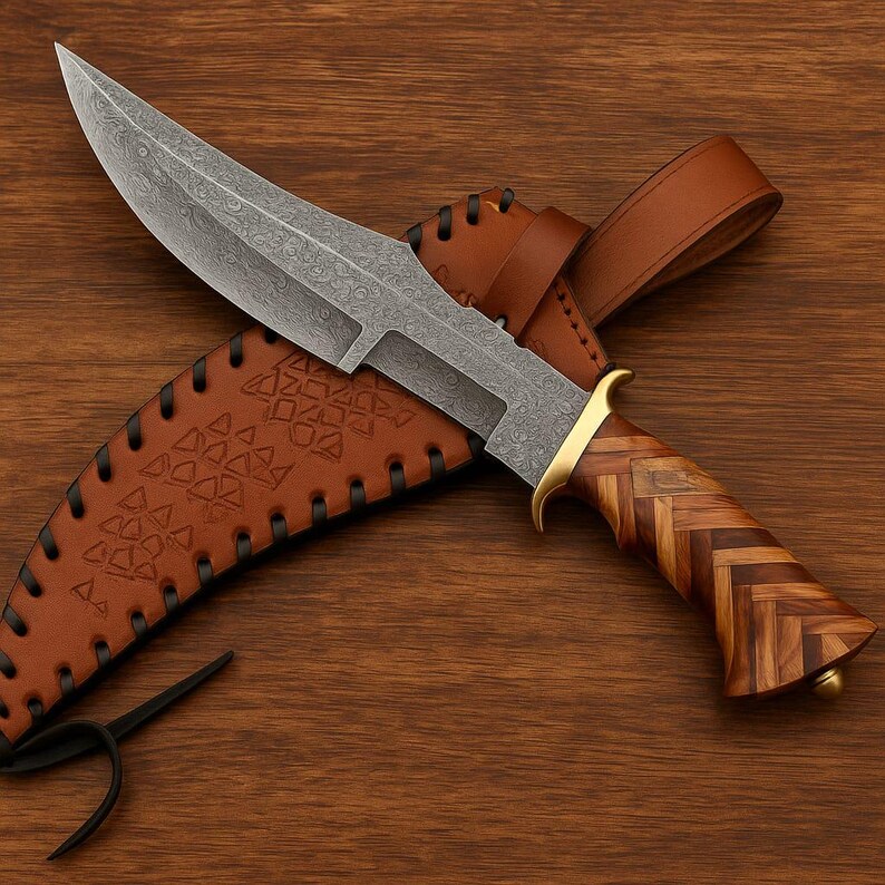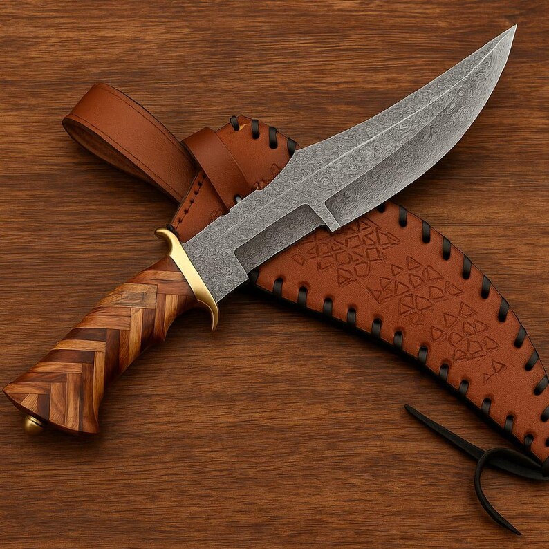 Elevate your outdoor experience with our premium Handmade Damascus Steel Hunting Knife. Expertly crafted for precision and durability, this knife features a stunning Damascus steel blade with a unique wave-like pattern, paired with an exotic multi-wood handle for superior grip and comfort. Complete with a custom leather sheath, this knife is both a functional tool and a collector’s masterpiece.