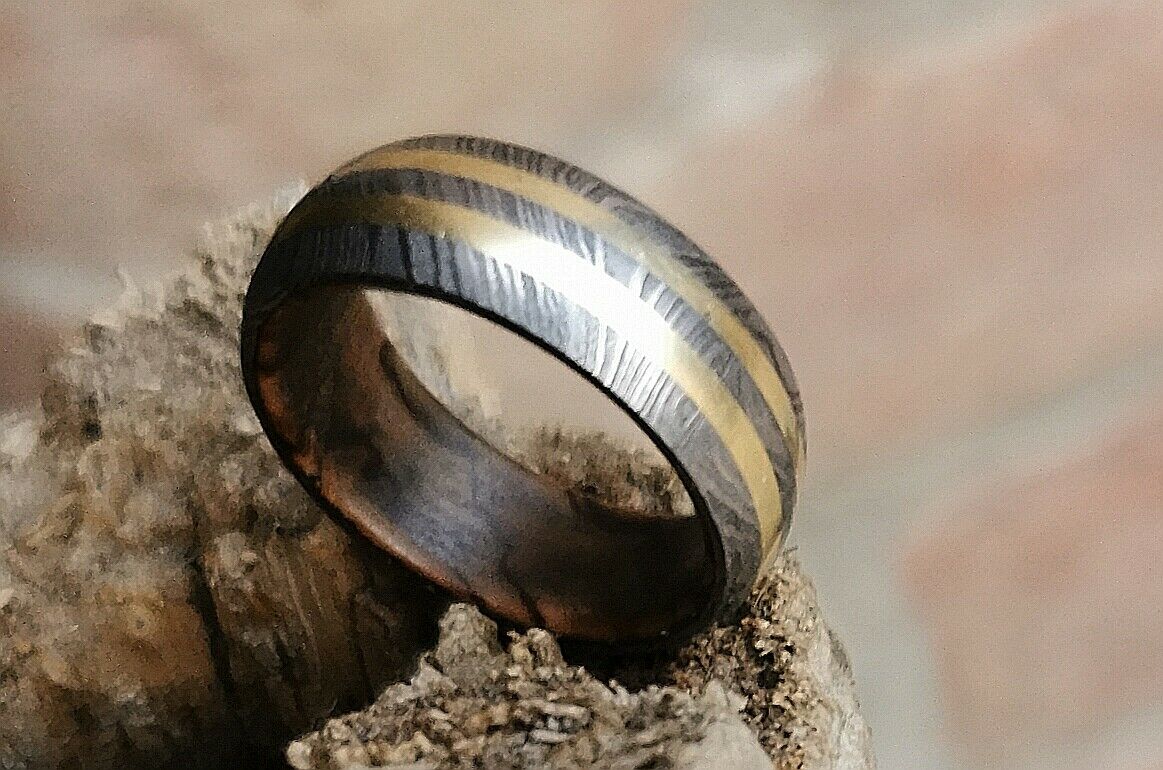 Custom handmade Damascus steel ring.